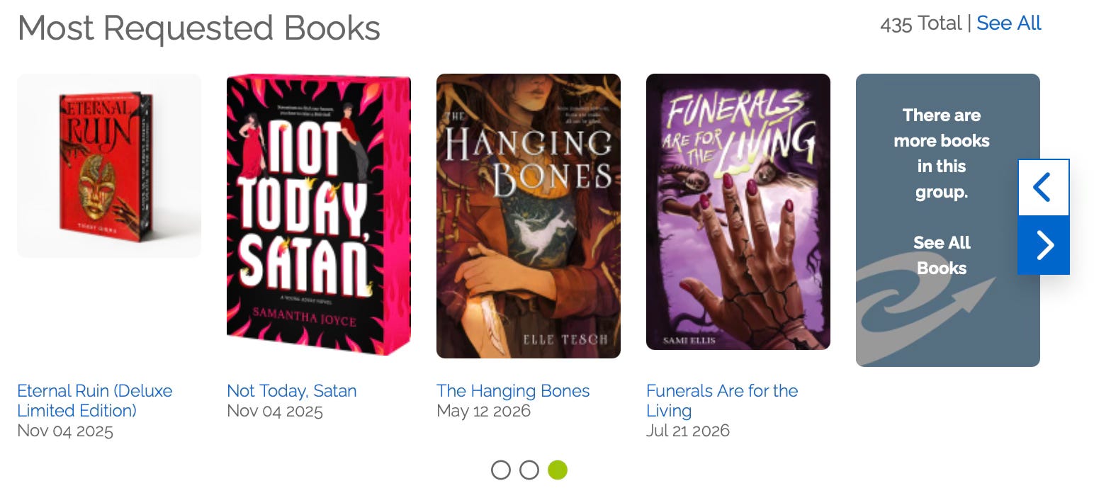 Peep her already in the most requested line-up for YA books! The 13th most popular, how auspicious.